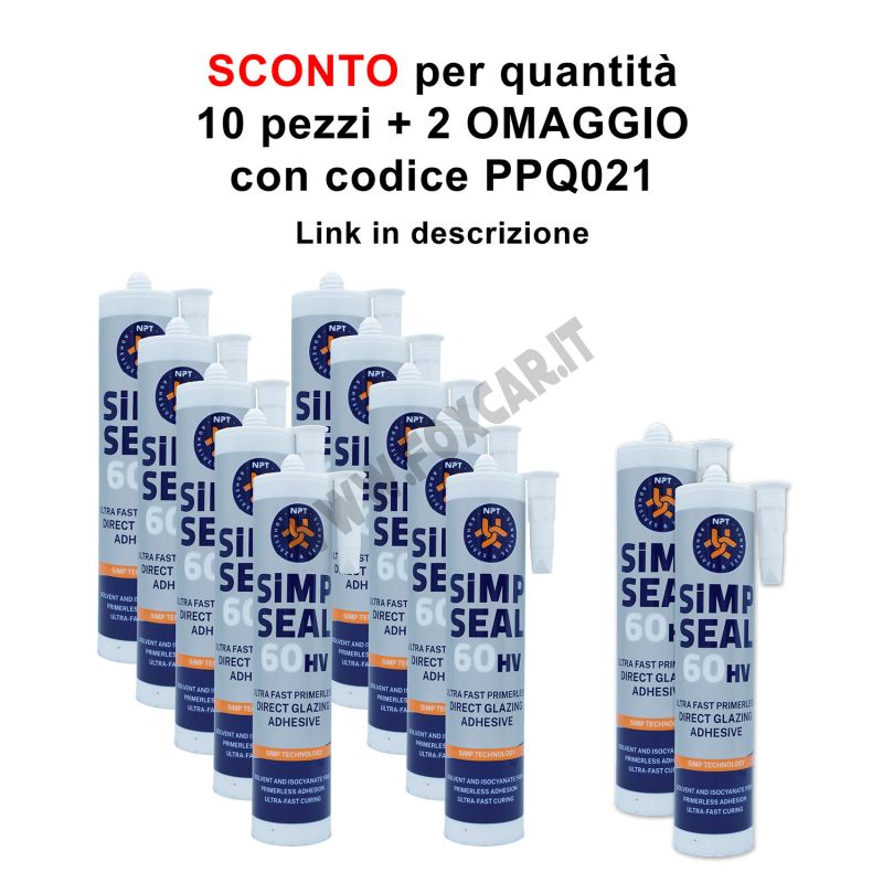 Puoi acquistarlo singolo o con lo SCONTO per quantità con codice PPQ021: PROMO: 10+2 omaggio adesivi elastici SiMP per incollaggio di parabrezza e cristalli senza primer.