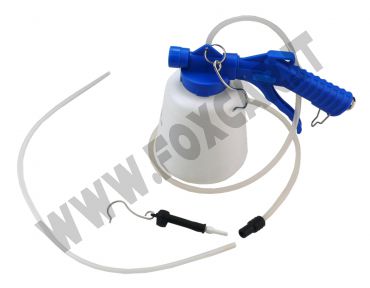 Attrezzo a depressione per spurgo freni. Dotato di serbatoio di recupero da 0,75 lt, tubo e pipetta in gomma per spurghi. Semplicissimo da usare, permette di effettuare lo spurgo dei freni anche da parte di un solo operatore. Ideale anche per spurgare l'impianto idraulico delle frizioni.
