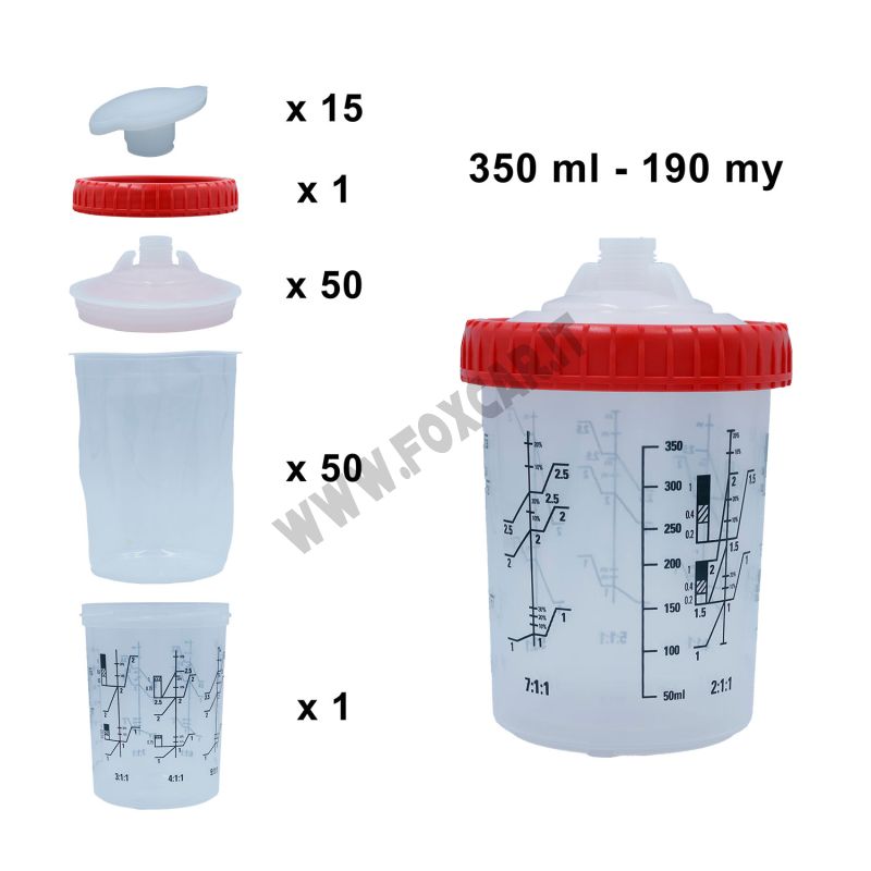 Il kit è progettato per preparare, filtrare e applicare la vernice con estrema praticità: si miscela il prodotto nella tazza morbida, si utilizza il coperchio con filtro integrato per trattenere le impurità e si procede all’applicazione. Le tazze morbide usa e getta semplificano il cambio colore e la pulizia, mentre la tazza rigida di supporto e la ghiera di fissaggio completano il sistema.