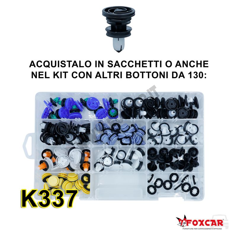 Puoi acquistare questo bottone in sacchetti o anche nel K337: Kit di 130 bottoni fermapannello.