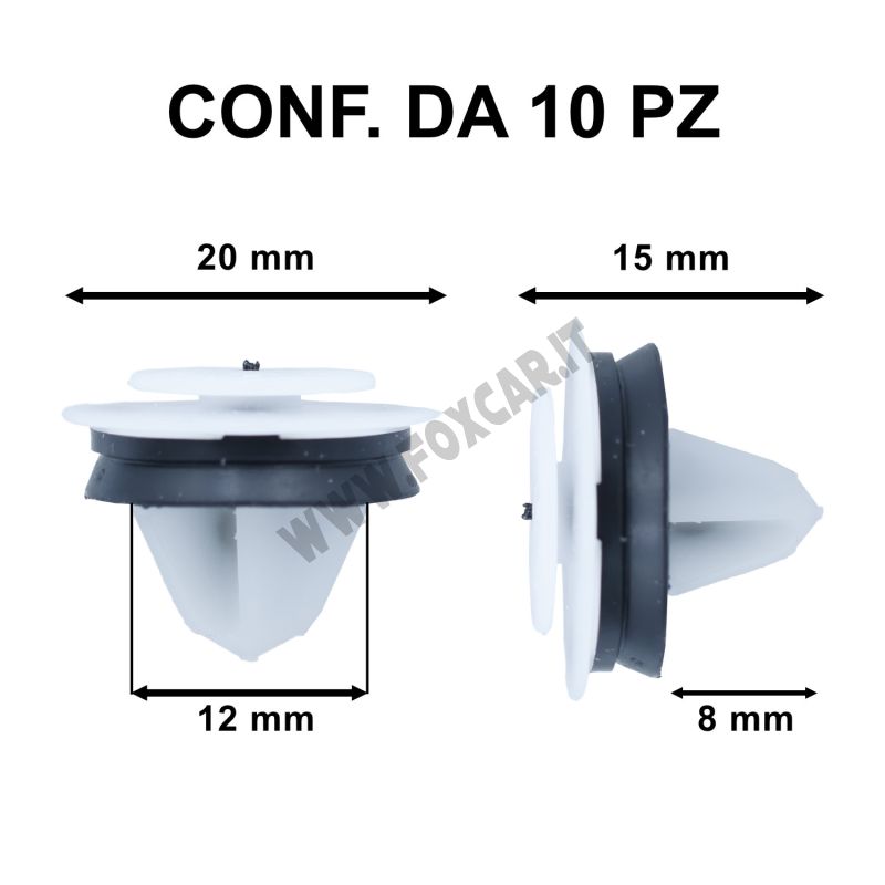 Confezione di 10 graffe per il fissaggio delle modanature esterne su Volkswagen Caddy, Transporter 2018. Codici intercambiabile 7e0843514-7h0843514.