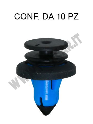 Confezione di 10 bottoni in plastica di colore blu e nero per il fissaggio del portellone montato su Alfa Romeo Stelvio dal 2017 in poi. Codice intercambiabile 51987251.