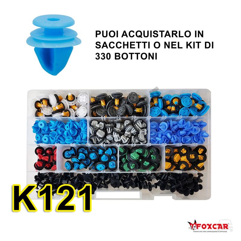 Confezione di 25 bottoni in plastica di colore azzurro per il fissaggio del portellone montato su Fiat Tipo dal 2015 in poi. Codice intercambiabile 52055147.