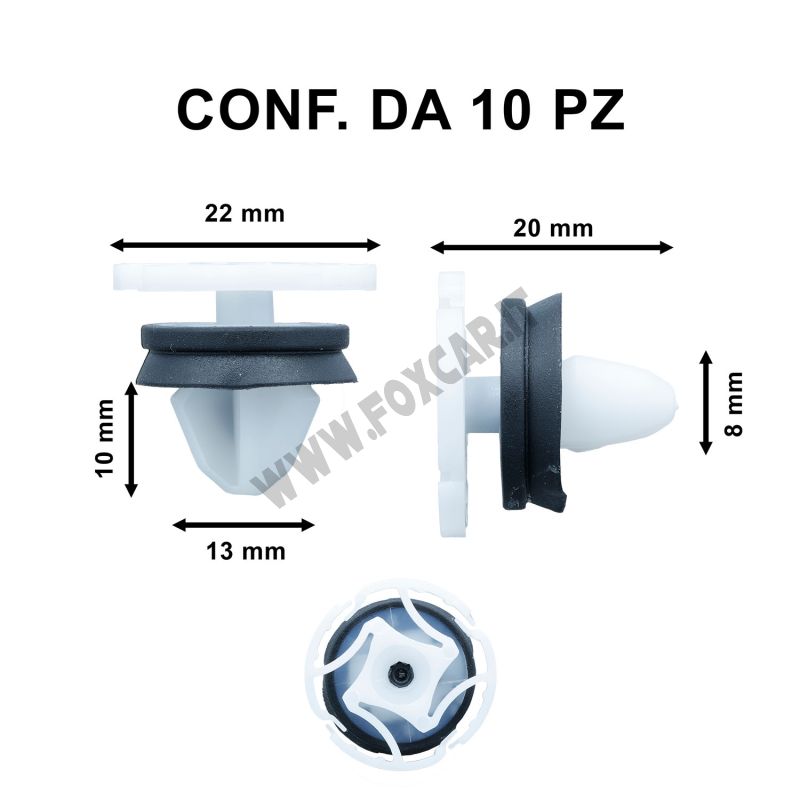 Set di 10 bottoni fermapannello progettati per fissare pannelli porta, plastiche e rivestimenti interni su diversi modelli Renault. Dotati di guarnizione in gomma per miglior tenuta e isolamento, sono indicati per officine e carrozzerie che necessitano di ricambi rapidi e resistenti per lavori di riparazione e rimontaggio interno.