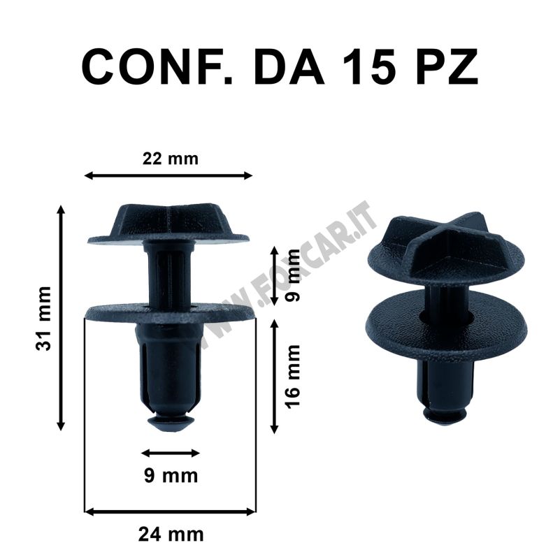 La clip viene inserita nell’apposito foro di fissaggio del pannello o della copertura. Una volta posizionata, l’inserimento del perno centrale espande le 3 alette di plastica, bloccando solidamente il rivestimento alla struttura del veicolo. In caso di smontaggio per interventi di manutenzione (ad esempio accesso alla batteria o ad altri componenti sotto copertura), è buona norma sostituire i rivetti deformati o danneggiati con elementi nuovi per mantenere una tenuta ottimale.