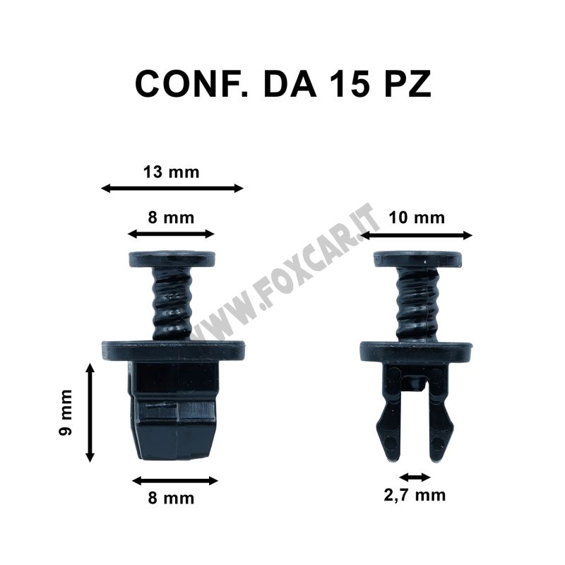 Bottone di fissaggio per applicazione su porta Volkswagen Golf 7, realizzato in nylon poliammide PA66. Questo rivetto in plastica è pensato per interventi di ripristino e sostituzione della minuteria auto, offrendo una soluzione adatta al fissaggio dei componenti nella posizione indicata.