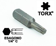 Chiavi a inserto con impronta TORX 15 con esagono da 1/4" e lunghezza totale di 25 mm.