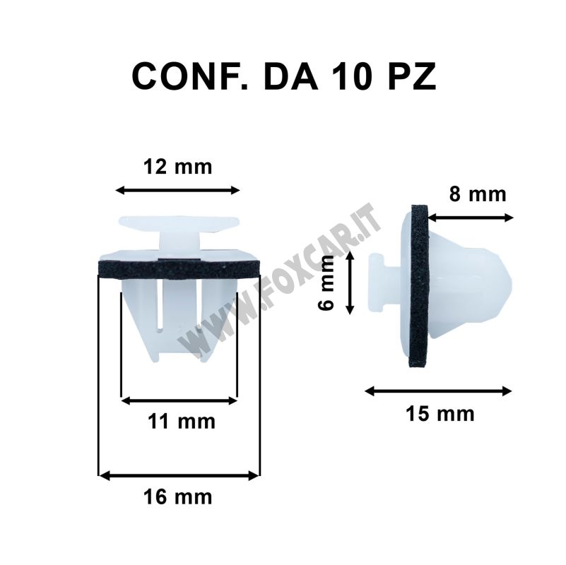 Il bottone di fissaggio viene inserito negli appositi fori presenti sulla carrozzeria o sui supporti della modanatura. Durante la sostituzione delle modanature o dopo operazioni di verniciatura e riparazione fiancata, i bottoni originali possono deformarsi o rompersi: la sostituzione con bottoni nuovi consente di riancorare correttamente i profili laterali, evitando distacchi e disallineamenti.