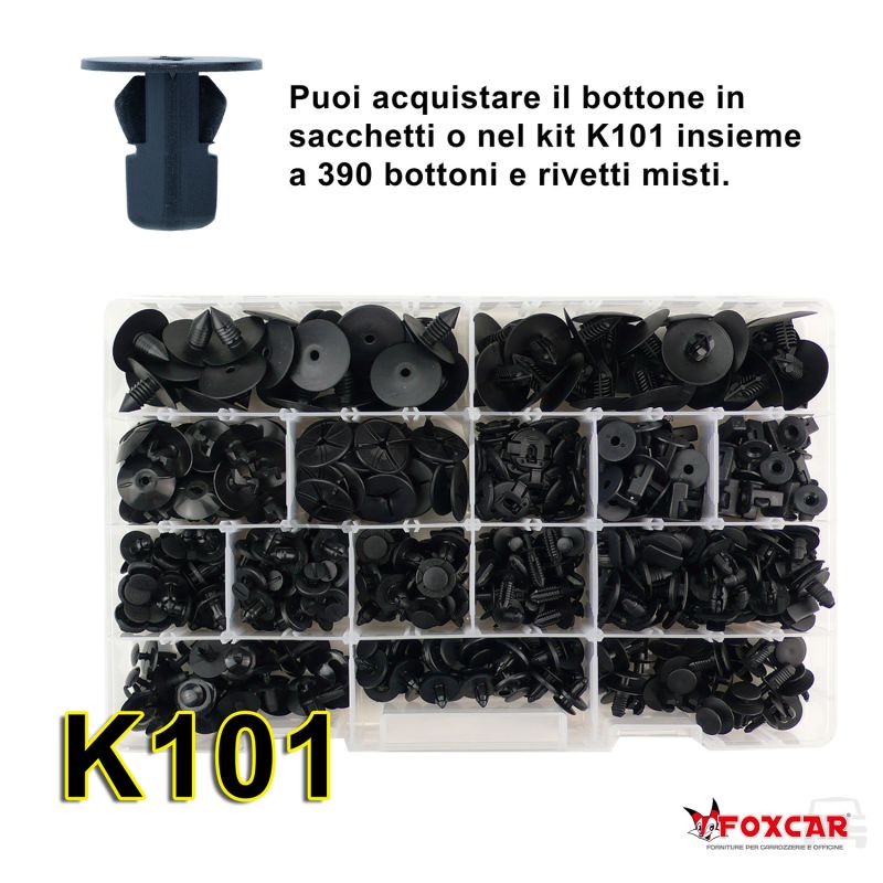 Applicazione: fissaggio paraurti, parasassi, plastiche interne ed esterne, parafango, locari passaruota, rivestimenti interni