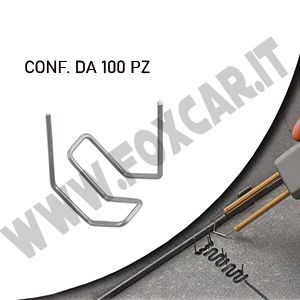Confezione di 100 graffette metalliche per saldare la plastica dei paraurti e supporti fari negli angoli interni.