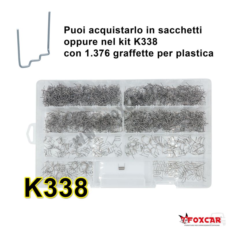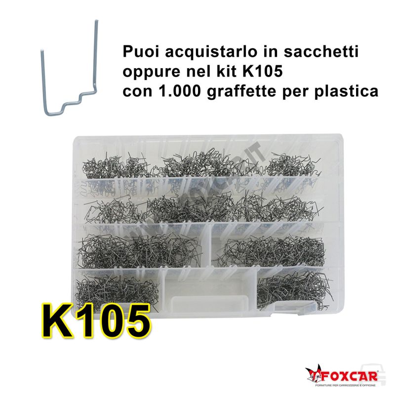Graffette in metallo per riparazione e rinforzo di componenti in plastica: la forma grecata aiuta a creare un’armatura stabile e duratura durante le lavorazioni di saldatura/riparazione su parti plastiche. Ideali per l’uso in officina e carrozzeria con saldatrici per plastica compatibili.