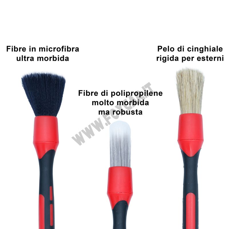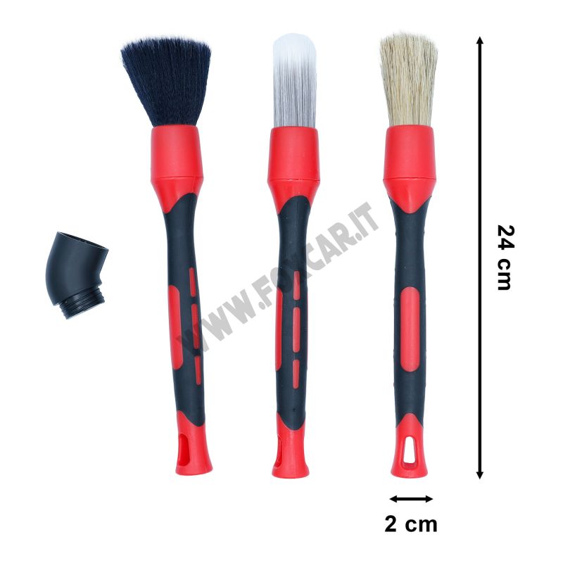 Set di pennelli per la pulizia dell'auto composto da 3 spazzole e 1 connettore, studiato per la pulizia accurata dei punti difficili da raggiungere. Ideale per rimuovere polvere, sporco leggero e sporco ostinato sia dagli interni che dagli esterni del veicolo, garantendo al tempo stesso la massima delicatezza sulle superfici più sensibili.
