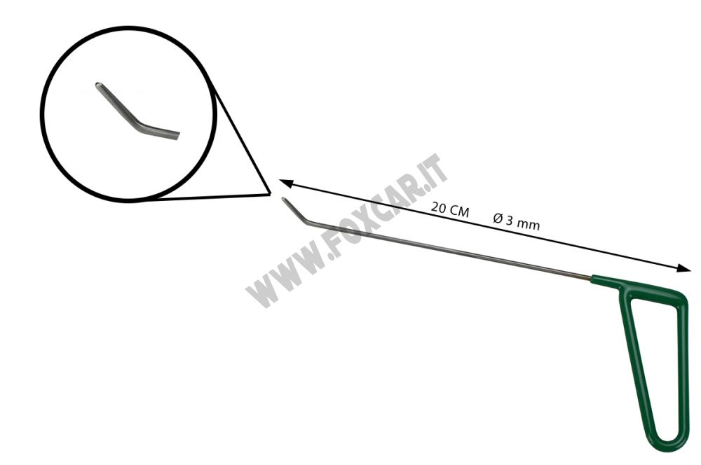 Leva per ripristino grandine con testa piatta tonda, diametro 3 mm lunghezza 20 cm con angolo 45° a SX. Manici rivestiti.