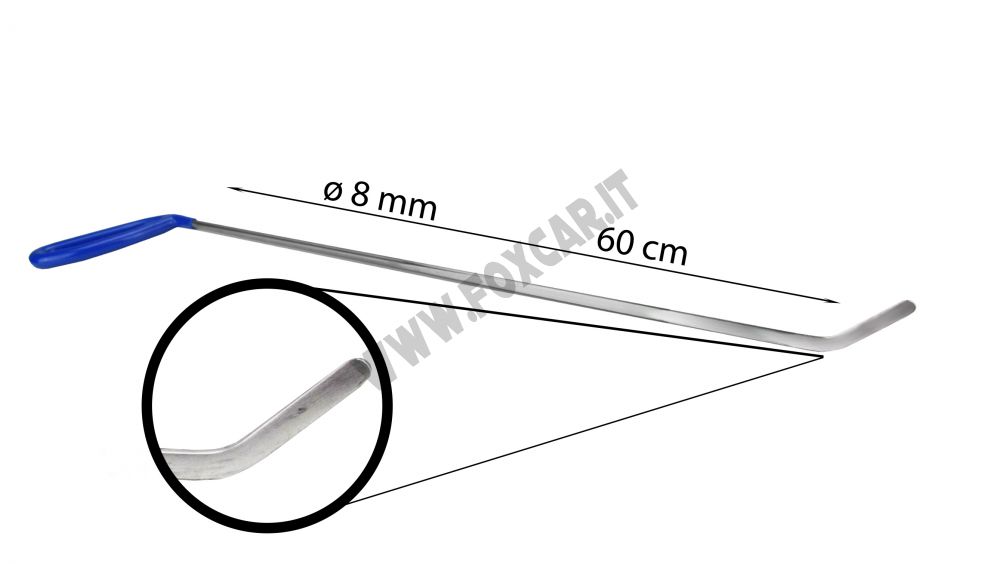 Leva per ripristino grandine con testa piatta tonda, diametro 8 mm lunghezza 60 cm con angolo 45° a DX. Manici rivestiti