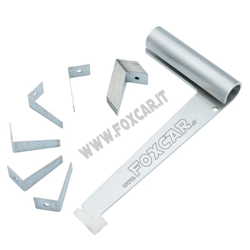 LiberGriglia è l'attrezzo per lo smontaggio delle griglie e dei baffi paraurti completo di 20 piastrine blocca linguette.