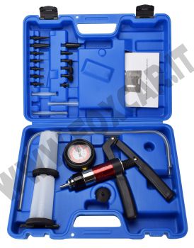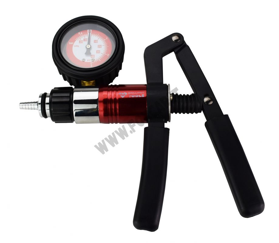 Pompa a vuoto multifunzione con funzione sia in depressione che in pressione, tipo mityvac. Ideale in varie operazioni come lo spurgo dei cilindretti freno. Tenuta con regolatore di pressione valvola EGR. Sensori di depressione e pressione assoluta. Tenuta di un circuito di alimentazione in bassa pressione di un motore diesel. Controllo della tenuta della membrana LDA della pompa di iniezione, ecc. In pressione arriva fino a 6 atmosfere e in depressione a 3 (pressione da 0 a 60 PSI in depressione da 0 a 30PSI).
