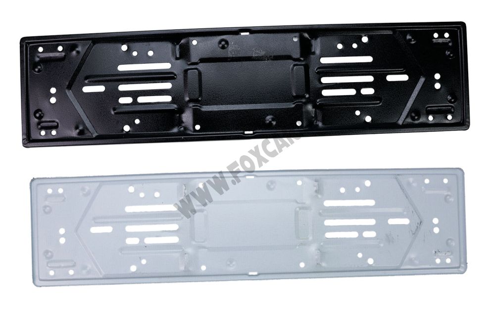 Confezione di 10 porta targa posteriori per autovetture immatricolate prima del 1999 in acciaio verniciato nero.