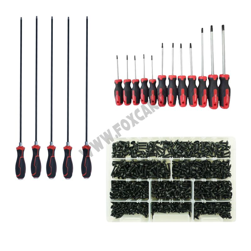 Set di cacciaviti Torx extra lunghi da 570 mm, ideale per raggiungere viti e punti di fissaggio difficili o profondi in ambito automotive, officina e manutenzione generale. La lunghezza maggiorata facilita il lavoro in zone poco accessibili del vano motore, del telaio e di macchinari, garantendo un serraggio più comodo e sicuro.