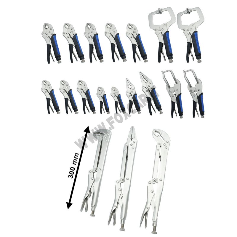 Un pratico set di pinze autobloccanti pensato per lavori professionali e di carrozzeria, ideale per serrare, bloccare e mantenere in posizione diversi tipi di materiali. Grazie al formato XXL da 300 mm, queste pinze offrono una presa sicura e una leva maggiore anche su pezzi di grandi dimensioni.