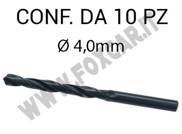 Punta elicoidale in acciaio HSS di diametro 4 mm. Confezione da 10 punte.