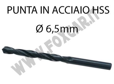 Punta elicoidale in acciaio HSS di diametro 6,5 mm.