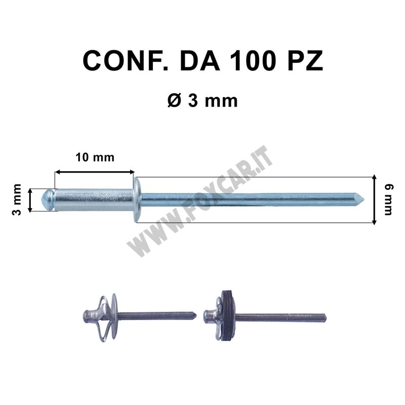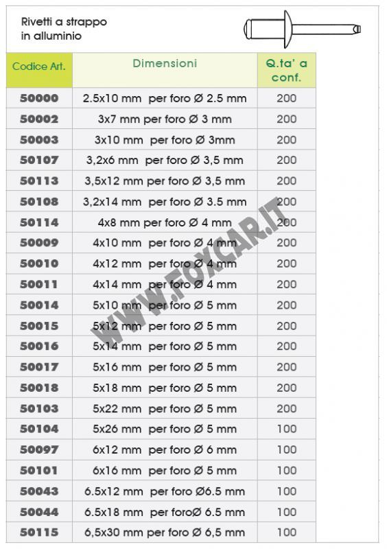 Puoi acquistare questo rivetto in sacchetti o anche nel K050: Kit di 1600 rivetti a strappo in alluminio, in diverse misure e diametri