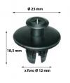 Confezione di 10 rivetti bottoni per carrozzeria in plastica ad espansione con perno a vite e testa a croce per il fissaggio dei parasassi, parasale, passaruota, paraurti su auto del gruppo Ford, Fiat Lancia, e vetture giapponesi. Lunghezza totale con perno inserito 18,5 mm, gambo per foro Ø 12 mm e testa diametro di 25 mm.