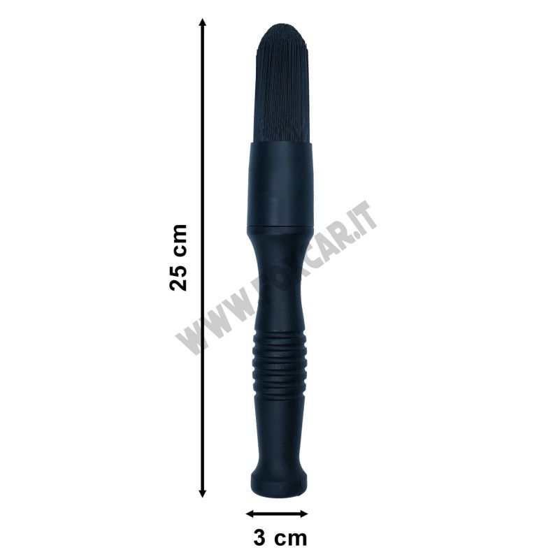 La spazzola si utilizza immergendo o bagnando le setole nel detergente idoneo alla superficie da trattare e lavorando l’area con movimenti controllati per agitare lo sporco. Le setole rigide aiutano a rimuovere residui e contaminazioni, mentre la punta affusolata permette di raggiungere fessure, bulloni, razze dei cerchi e altri punti difficili. Dopo l’uso, si consiglia di sciacquare accuratamente la spazzola per rimuovere i residui di prodotto e sporco.