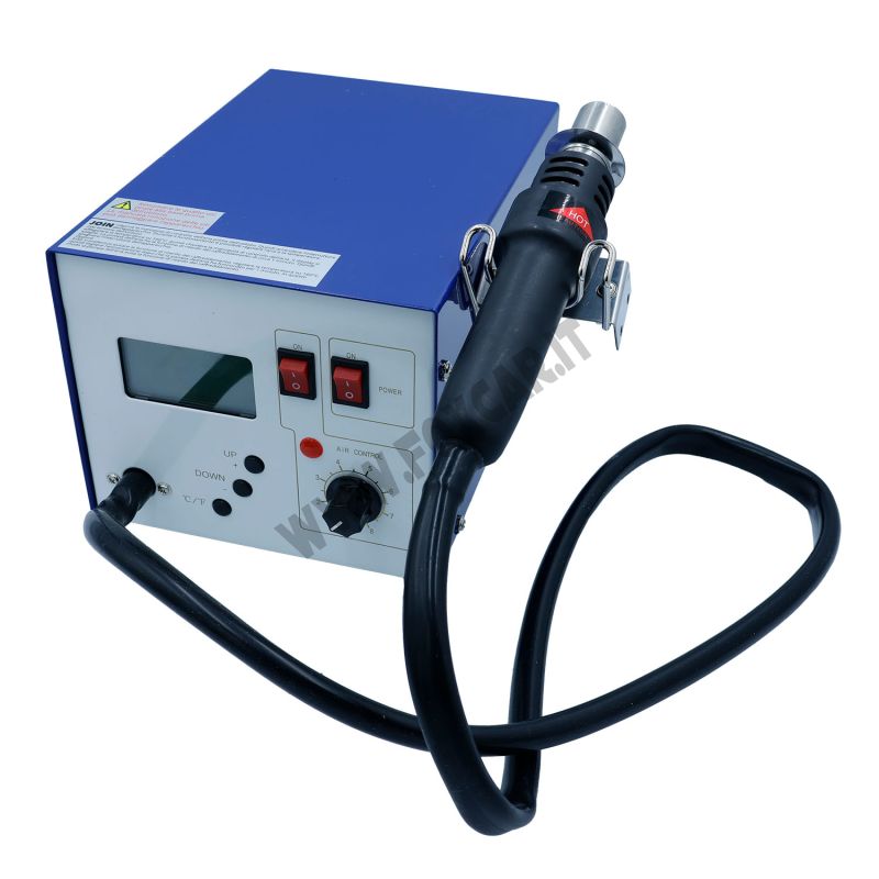 Stazione saldante e dissaldante ad aria calda da 320 W progettata per la riparazione di paraurti e componenti in plastica della carrozzeria auto. Ideale per carrozzerie, officine e centri di assistenza che effettuano interventi di ricostruzione, rinforzo e saldatura di plastiche automobilistiche.