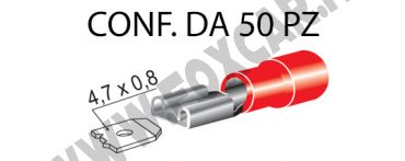 Confezione di 50 terminali. Terminale faston femmina da 4,7 mm ricoperto in plastica di colore rosso, per cavi con sezione da 0,25 a 1 mm².