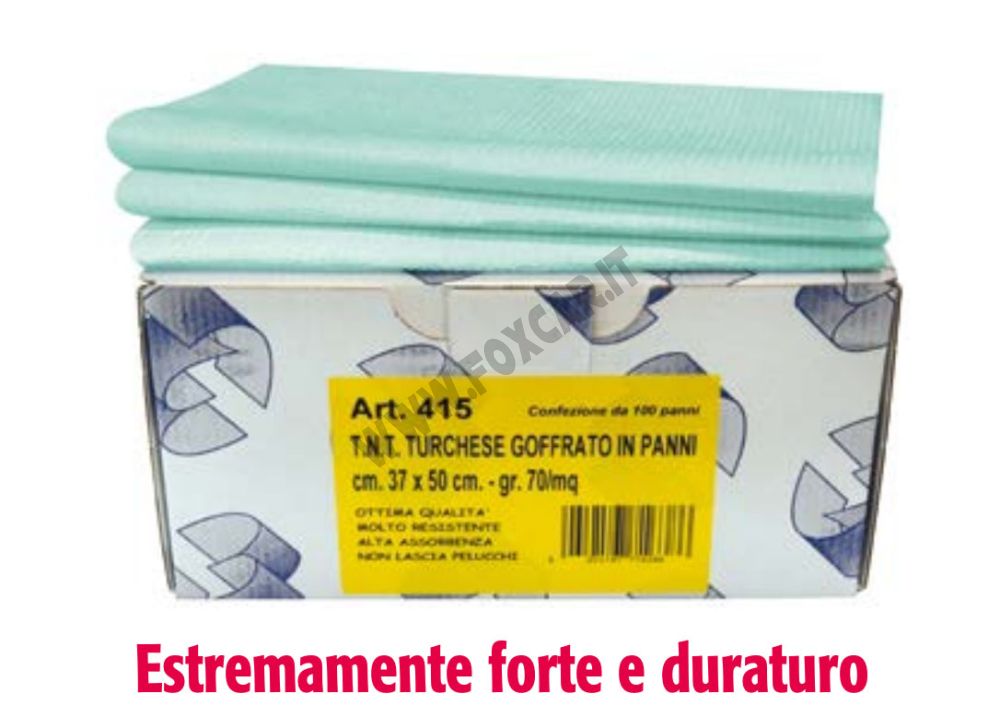 Confezione di panni goffrati in T.N.T. turchese pensati per la pulizia auto, con un’ottima combinazione di assorbenza e resistenza. Ideali quando serve un supporto pratico, robusto e che non lasci residui durante le operazioni di pulizia.