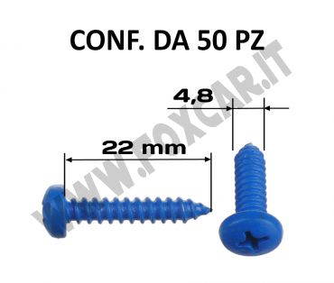Confezione di 50 viti. Viti per il fissaggio delle targhe di colore blu.
